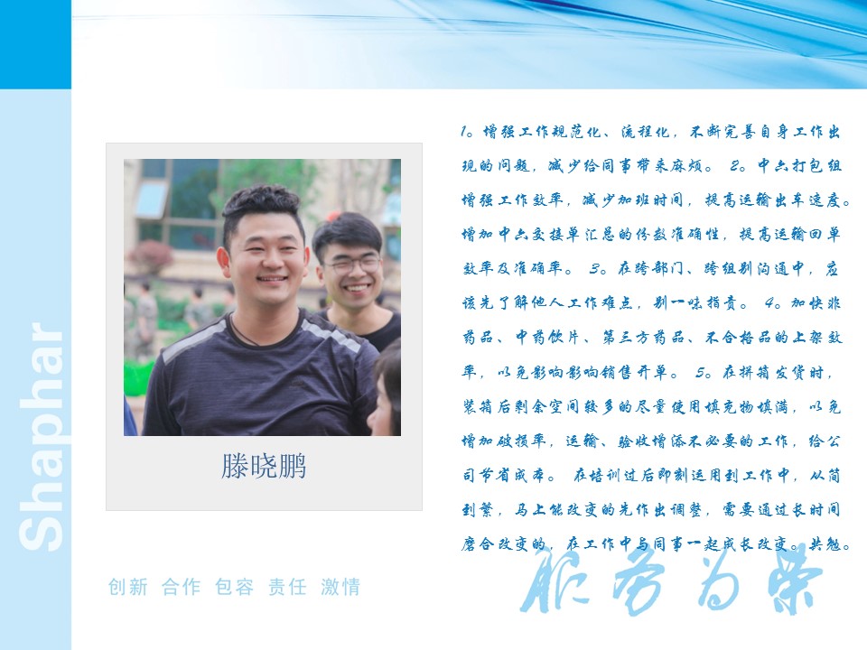 本次培训的课程均由公司资深业务专家针对“一名合格的基层管理干部”的要求提取而出的干货,旨在让学员能够快速吸收干货,了解储运部的整体操作,为六月份的轮岗培训奠定基础。