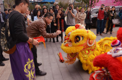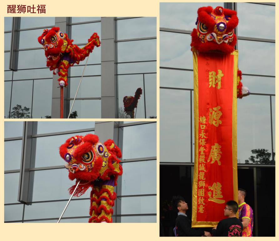 舞狮“采青”,“吐联”,“吐福”,醒狮队的精彩表演获得全场满堂喝彩的同时,也将乔迁喜庆的吉祥和好运带给了每一位员工,每一位客户。